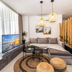 Elegant villa with private pool, 3 bedrooms, kitchen, gym, and mountain views.