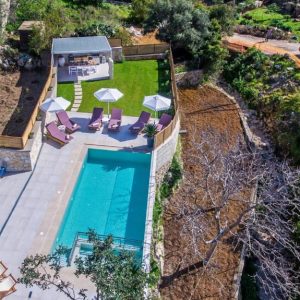 Located in the serene village of Gerani, Villa Memoria offers a spacious two-level layout featuring three bedrooms ( 2 double beds) & (1 single bed) and four bathrooms, perfect for families or friends seeking privacy and comfort.